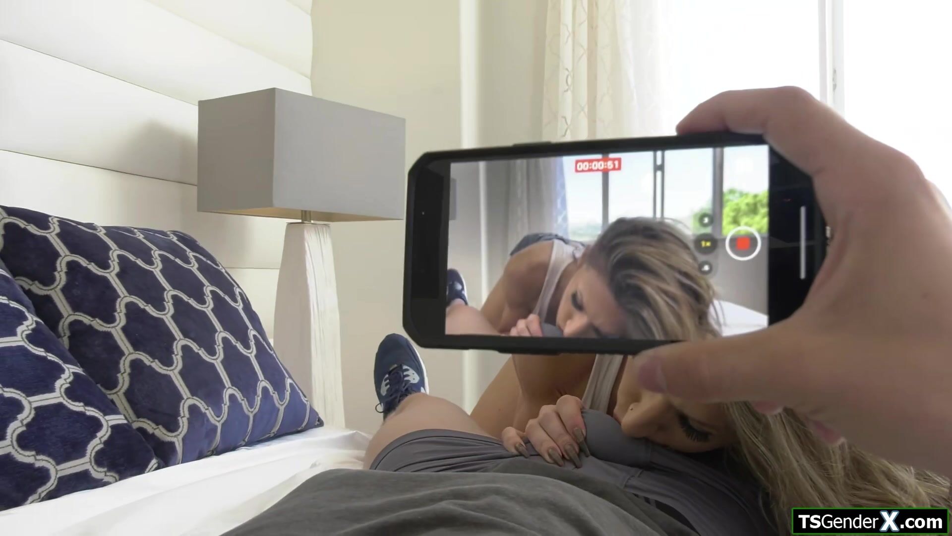 Busty trans hitchhiker Jade Venus wants to help a guy out and in a motel she lets him record her giving a blowjob.The shemale gets her big tranny cock sucked off and gives a double handjob.The big tits tgirl goes on all fours to get anal barebacked