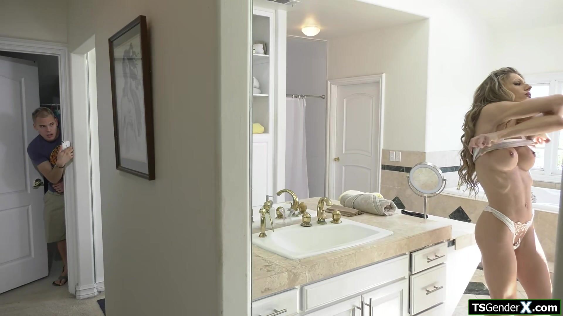 You are jerking off to me your busty shemale stepmom?Big cock tgirl Jade Venus catches her stepson and gives him the real deal by facefucking him with her dick.The trans rims and sucks him before barebacking his ass.The big tits tranny anal rides