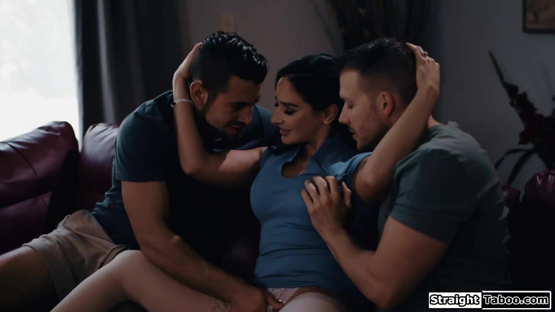 Sheena Ryder tells her stepson and his friend not tell anyone bout whats gonna happen. This time she has two big cock to satisfy her. She is sucking his big cock while the other guy is licking her pussy. Then she lets both of them fuck her at once.