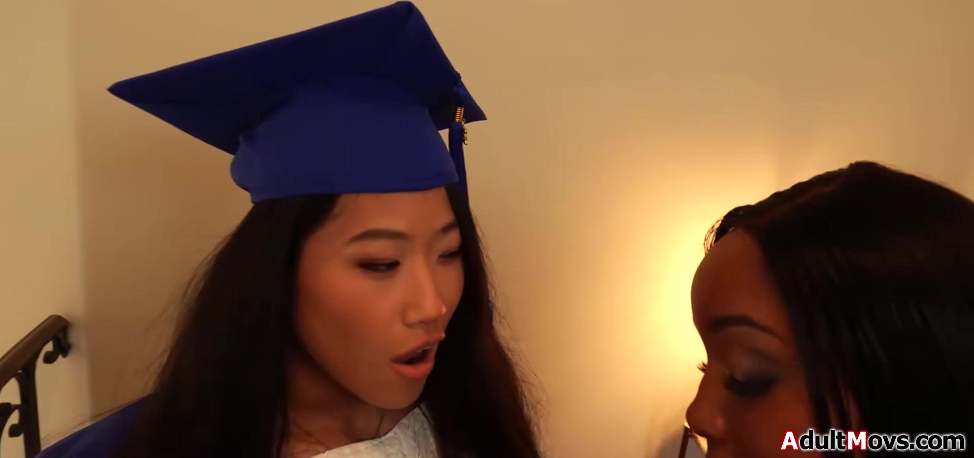Black stepdad is sucked off by big tits ebony Lily Starfire at a graduation party.He walks upstairs and sees her kissing his stepdaughter Alona Bloom.The busty black babe convinces the petite asian to suck her stepdad together and he bangs them both