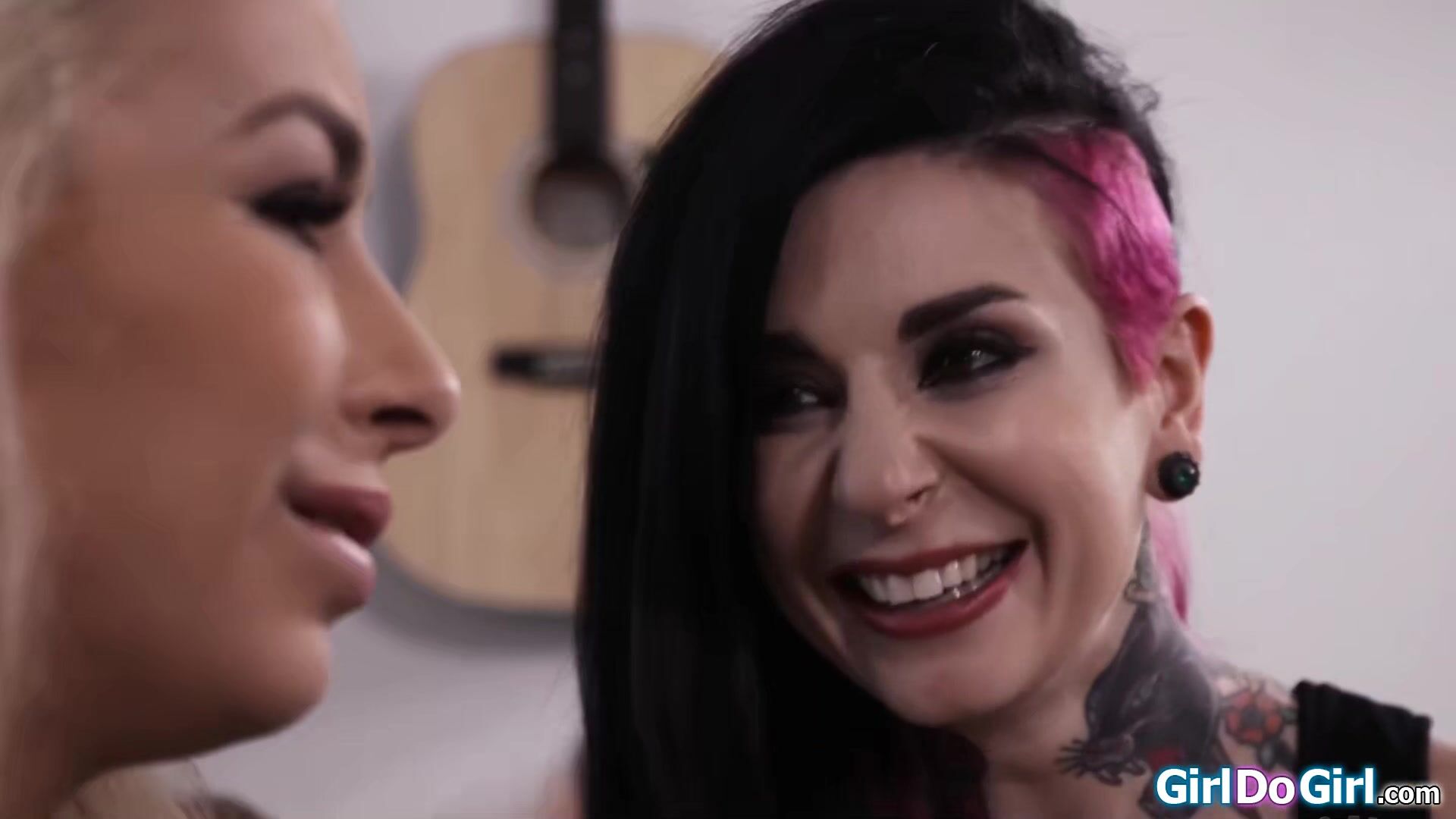 Tattooed lesbian Joanna Angel meets her gf Carmen Caliente for the first time and wants sex immediately.They tongue wrestle before the alt babe licks and fingers the small tit Latinas pussy.The blonde babe rims her girlfriends ass and they masturbate