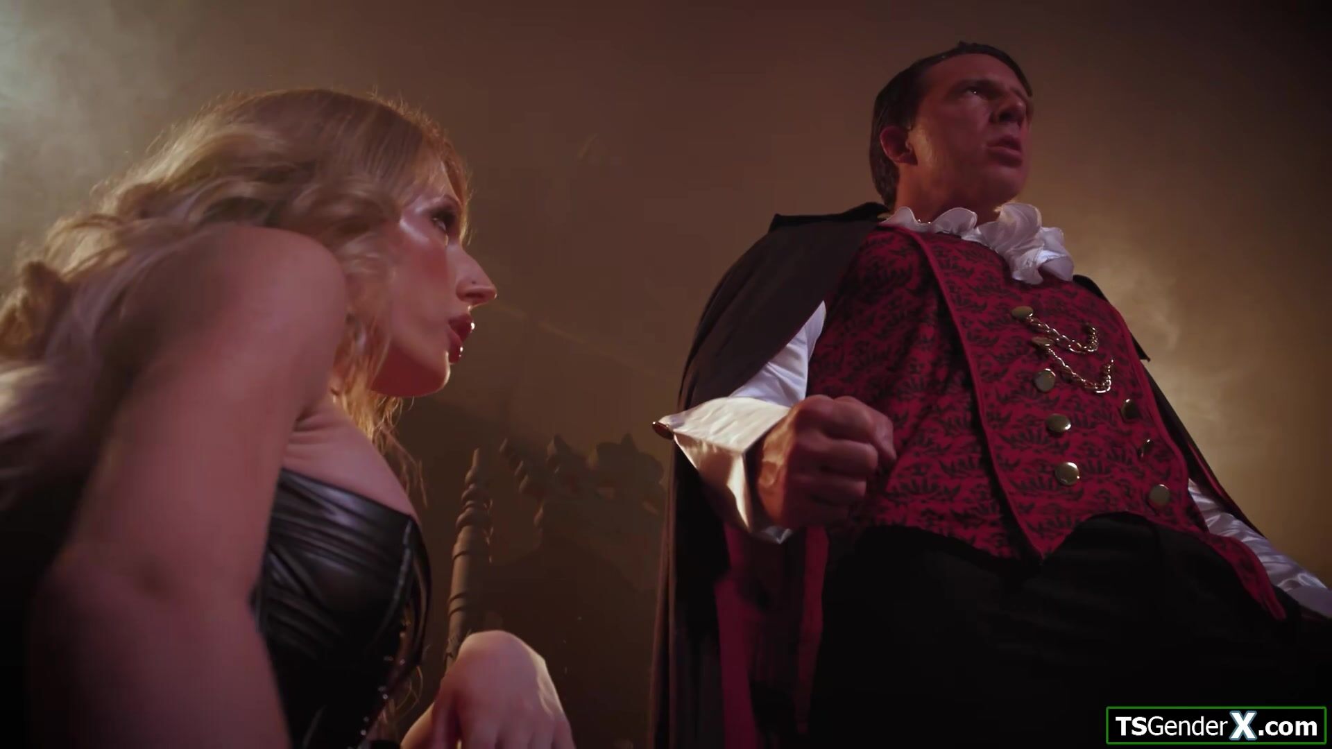 Shemale vampire Jade Venus sucks Dracula