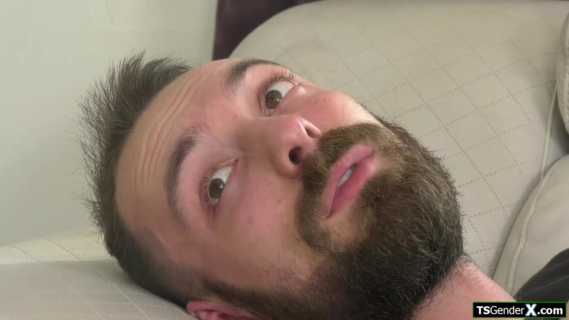 Busty trans shrink Cherry Mavrik reveals her big cock and facefucks her male client.The big tits blonde shemale handjobs both boners before she anal rides his dick with her tranny hardon.The horny tgirl bends him over and barebacks his tight ass
