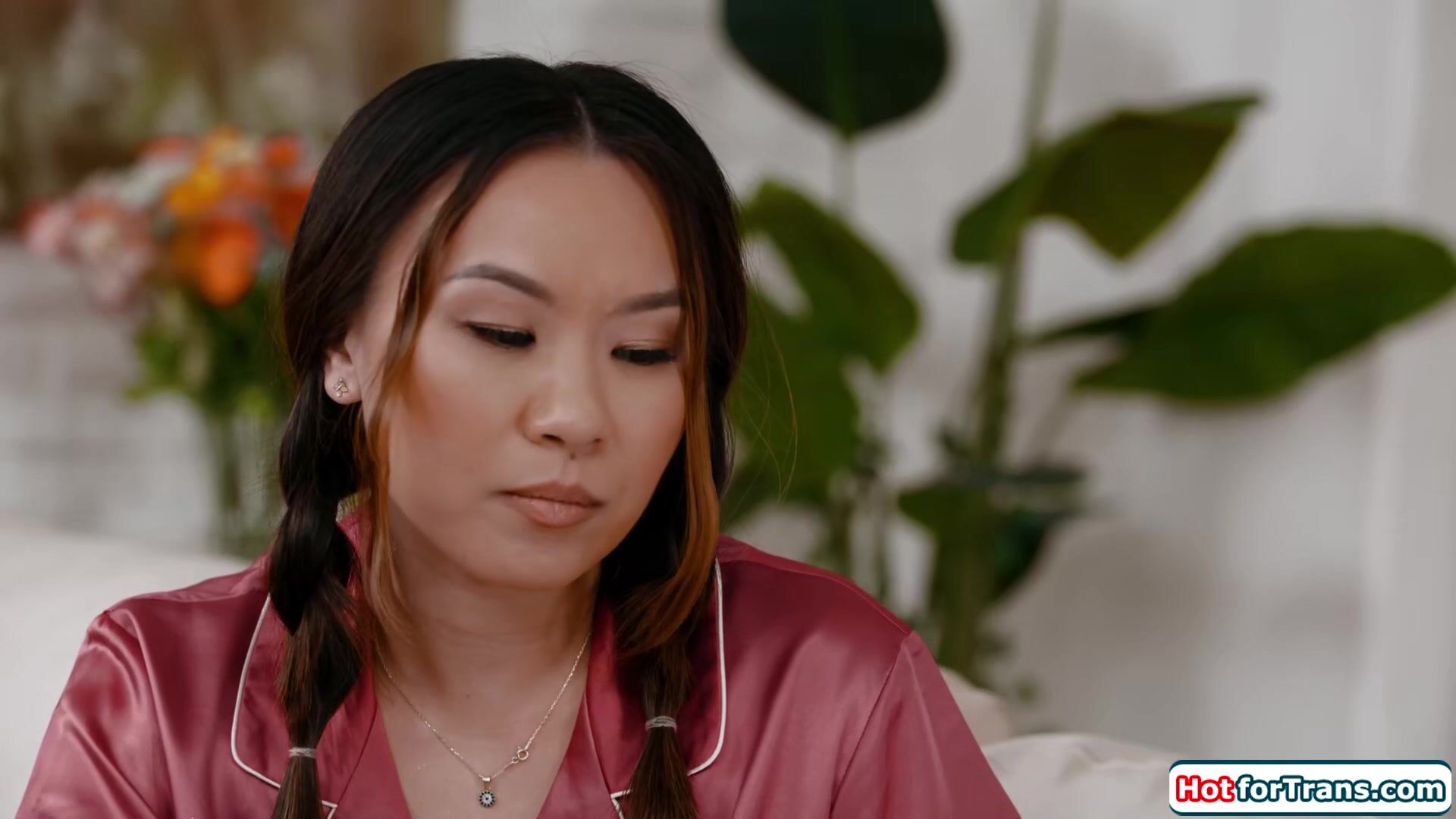 Asian teen Kimmy Kimm is more interested in her busty trans babysitter Jade Venus than the slumberparty.She makes her move and is kissed by the tgirl.The big tits shemale licks the petite babes pussy and is deepthroated.The big cock tranny bangs her