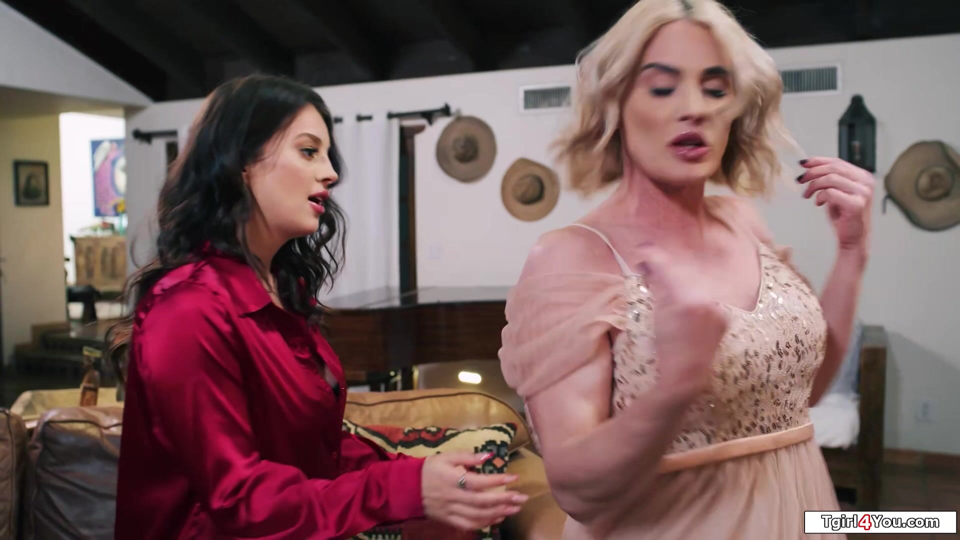 That intimate dance got shemale Lucy Harts tgirl dick hard and she kisses her busty instructor Maddy May.The big tits babe sucks the trans and enjoys having her pussy licked.The blonde tranny puts her boner in and bangs the petite tattooed brunette