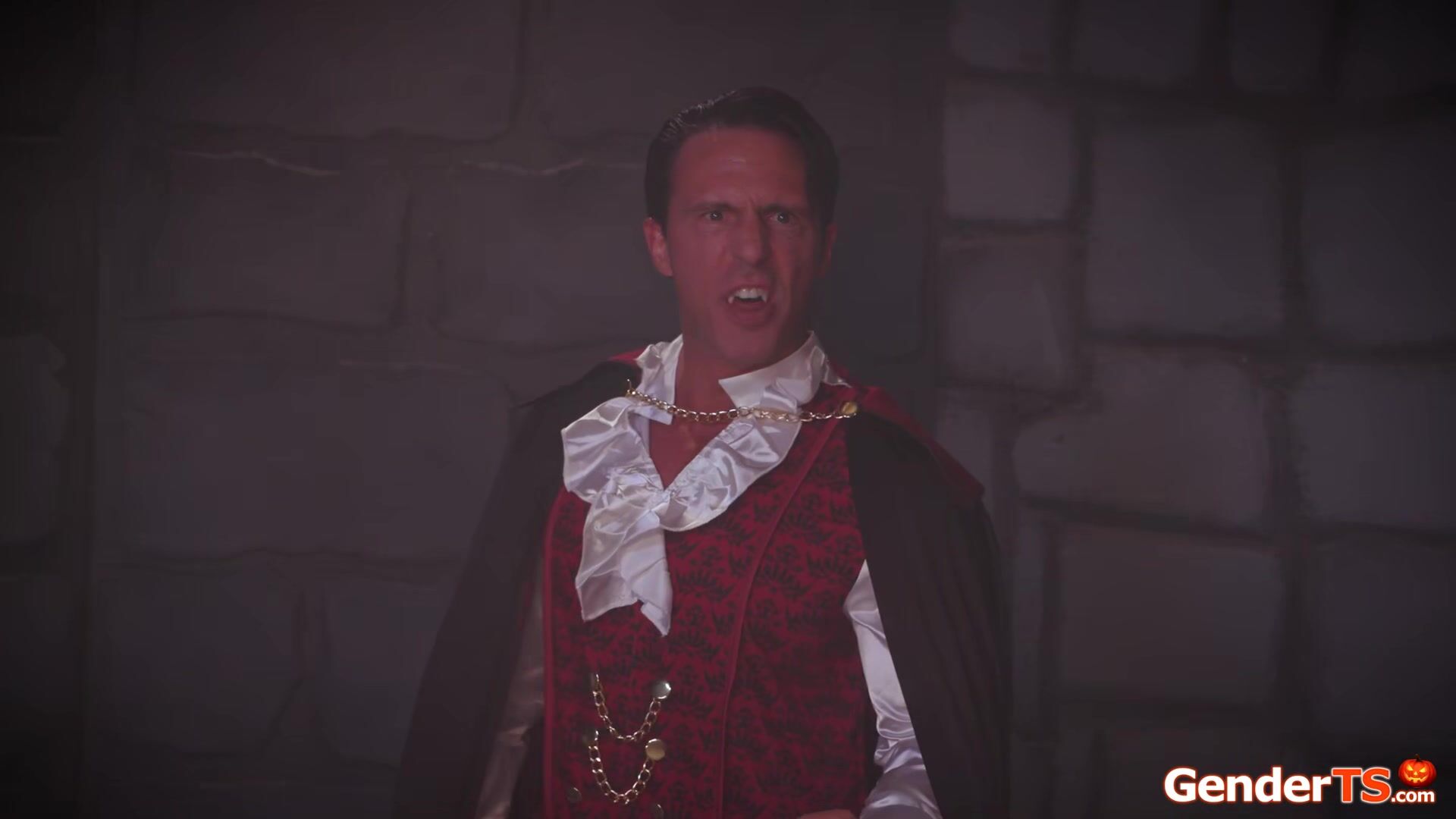 Captured Transpirella,Ariel Demure,shows Dracula her big shemale cock to try to distract him.The big tits tgirl is deepthroated by the dark lord.The busty trans is sucked and rims the vampire before anal fucking him.The tranny lets him bareback her