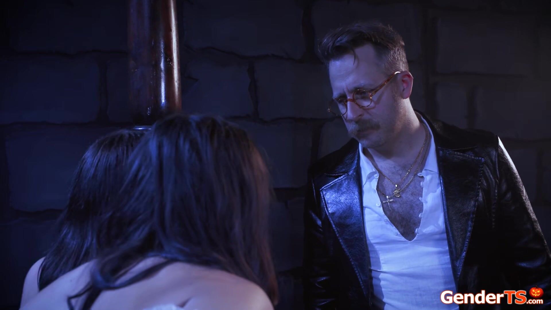 Van Helsing encounters two new vampires Haven Rose and Gal Ritchie and whips his cock out to give them a full ass staking.The busty tgirl and petite babe deepthroat his cock.The big tits shemale is barebacked before she anal fucks the vampire hunter