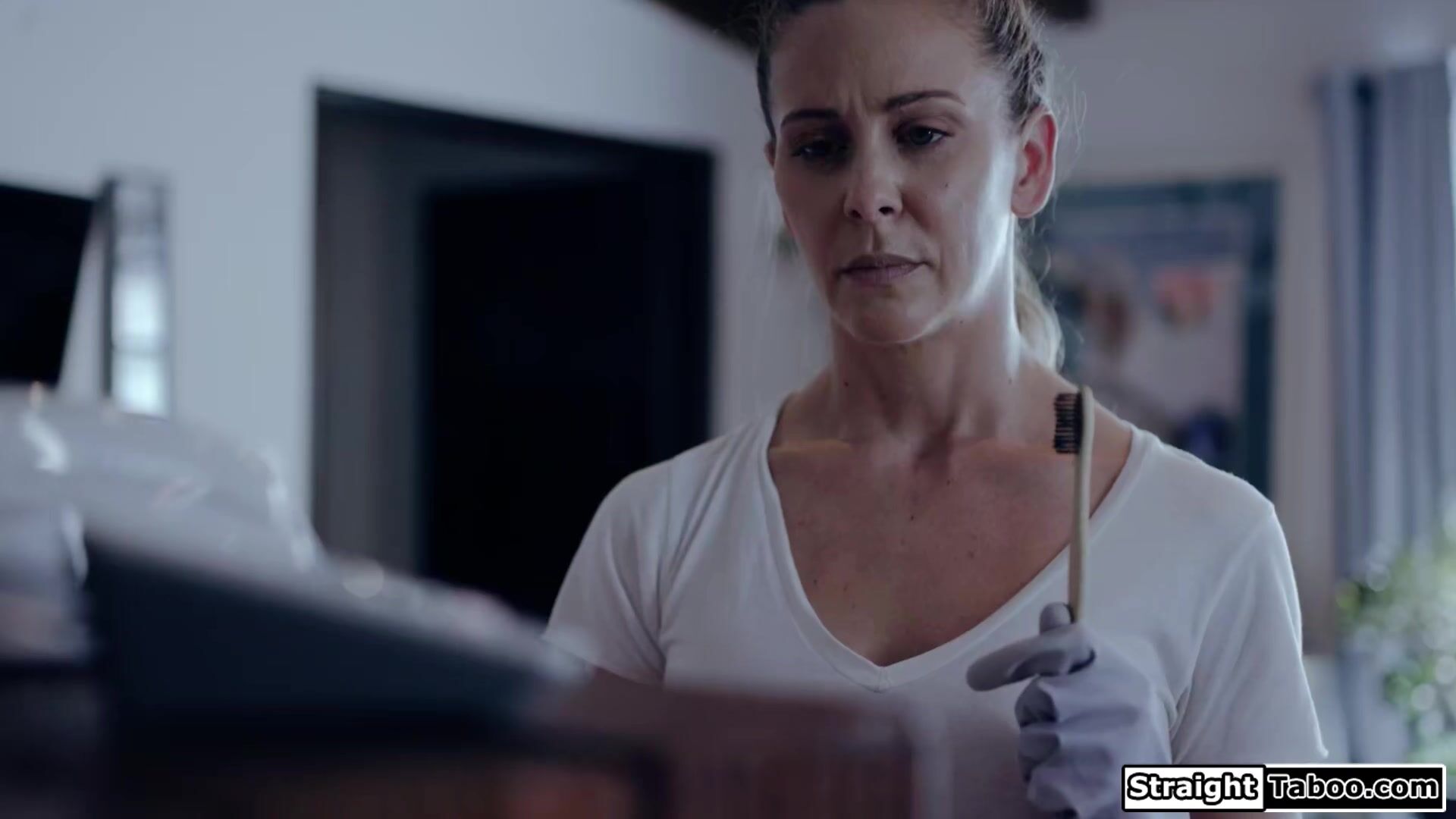 Busty milf Cherie DeVille suffers from agoraphobia.While she cleans herself in the show a stranger appears in her head making her feel horny.The big tits cougar starts to touch herself.The blonde masturbates her wet shaved pussy until she orgasms