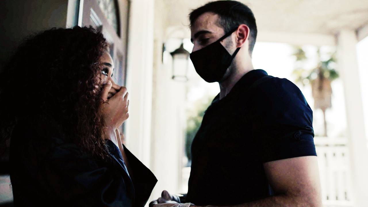 Petite Ebony Scarlit Scandal has been taken care of her ill husband during the pandemic.She stays quiet about it so she can fuck the delivery guy.The small tits brunette black babe gets her pussy licked and sucks off his big cock before shes banged