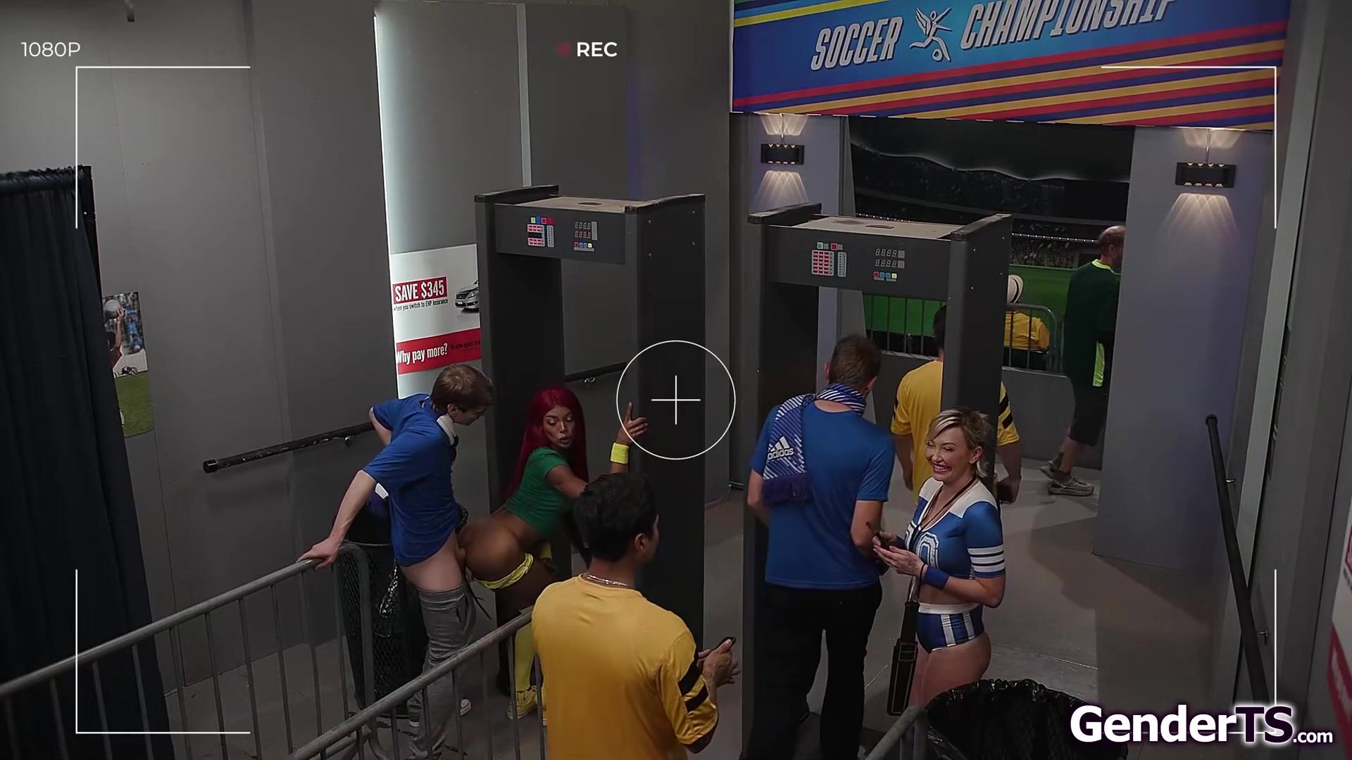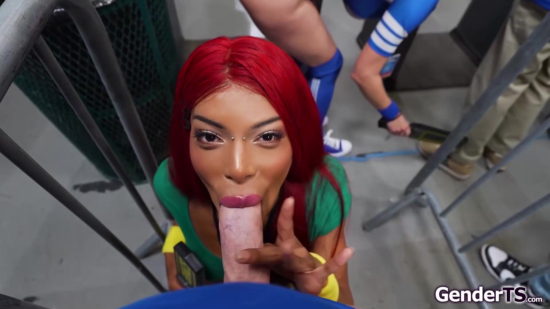 Busty trans Lola Morena sucks cock at the security gate.Her colleague Adira Allure works the row away while the shemale is barebacked in public.The tgirl is sucked by the blonde while she anal rides before she sets her pussy on top of her tranny dick