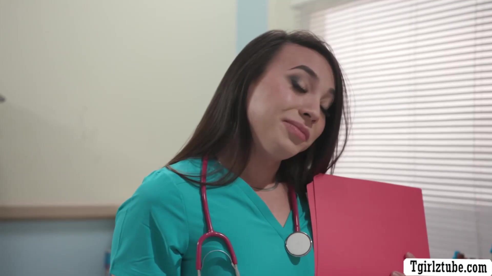 Lucky patient got his dick sucked by hot TS nurse