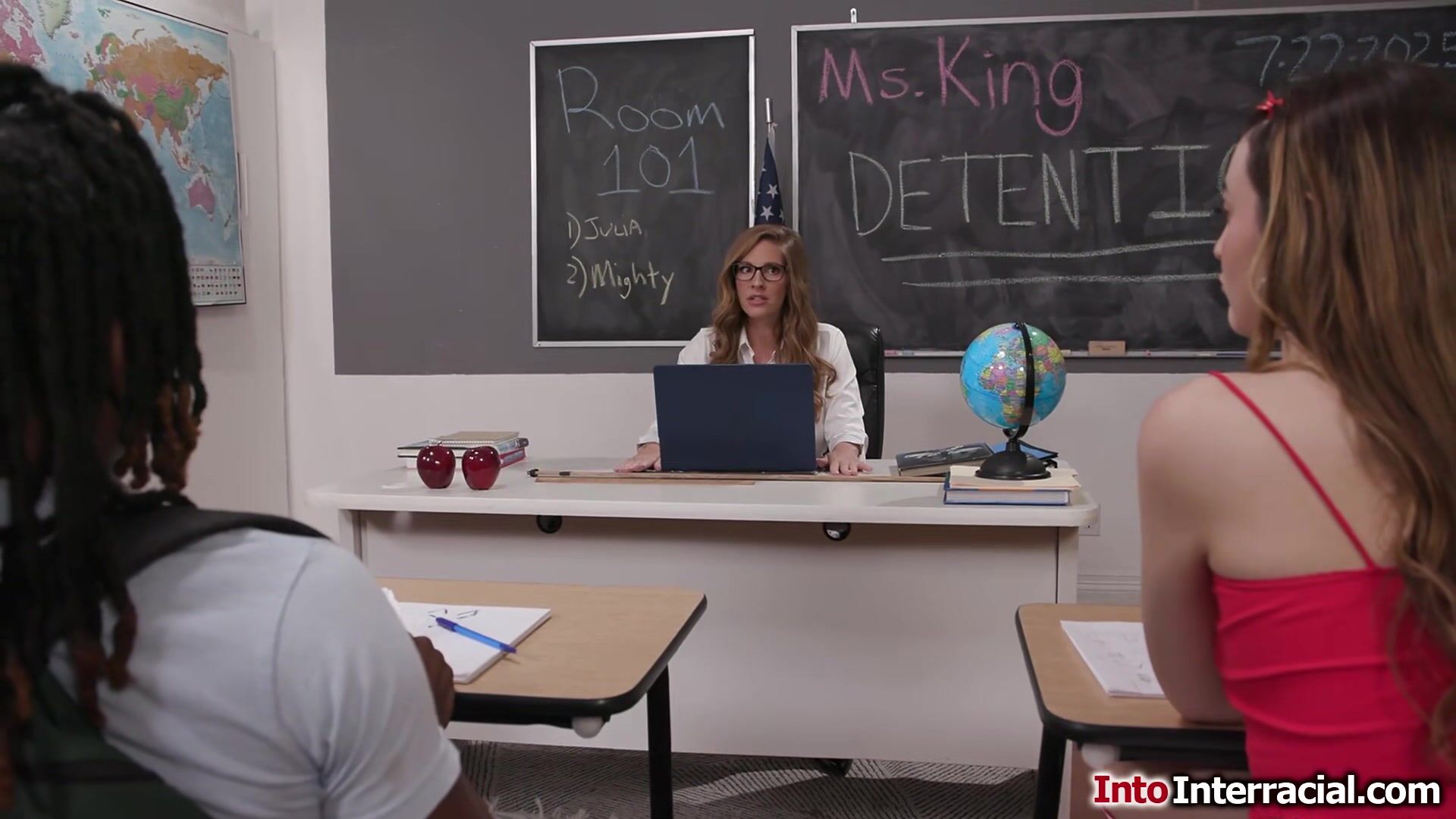 With all that talk of teen Julia James about the size of her classmates big black cock busty teacher Annie King now wants to see it for herself.She joins the coed in a deepthroat blowjob and is banged.The milf watchs her get fucked until she squirts