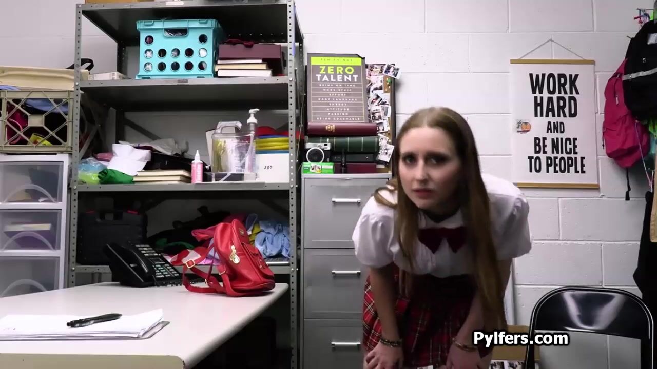 Sexy coed Laney gets busted for stealing a pack of condoms. Now its time to try them out... but during the act the officer pulls them off!