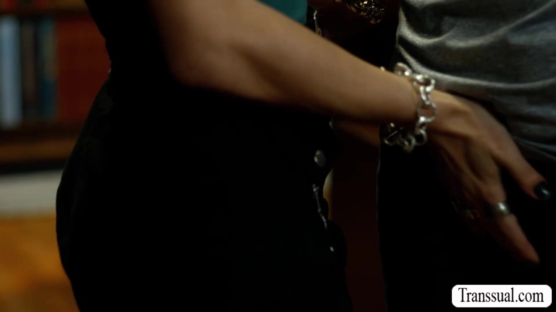 Busty gorgeous Trans librarian meets a bald guy in the library.She start sucking his hard big cock while no ones watching and she lets him bareback fuck her wet asshole so hard.Go to Transsual.com for the full video of this and more.