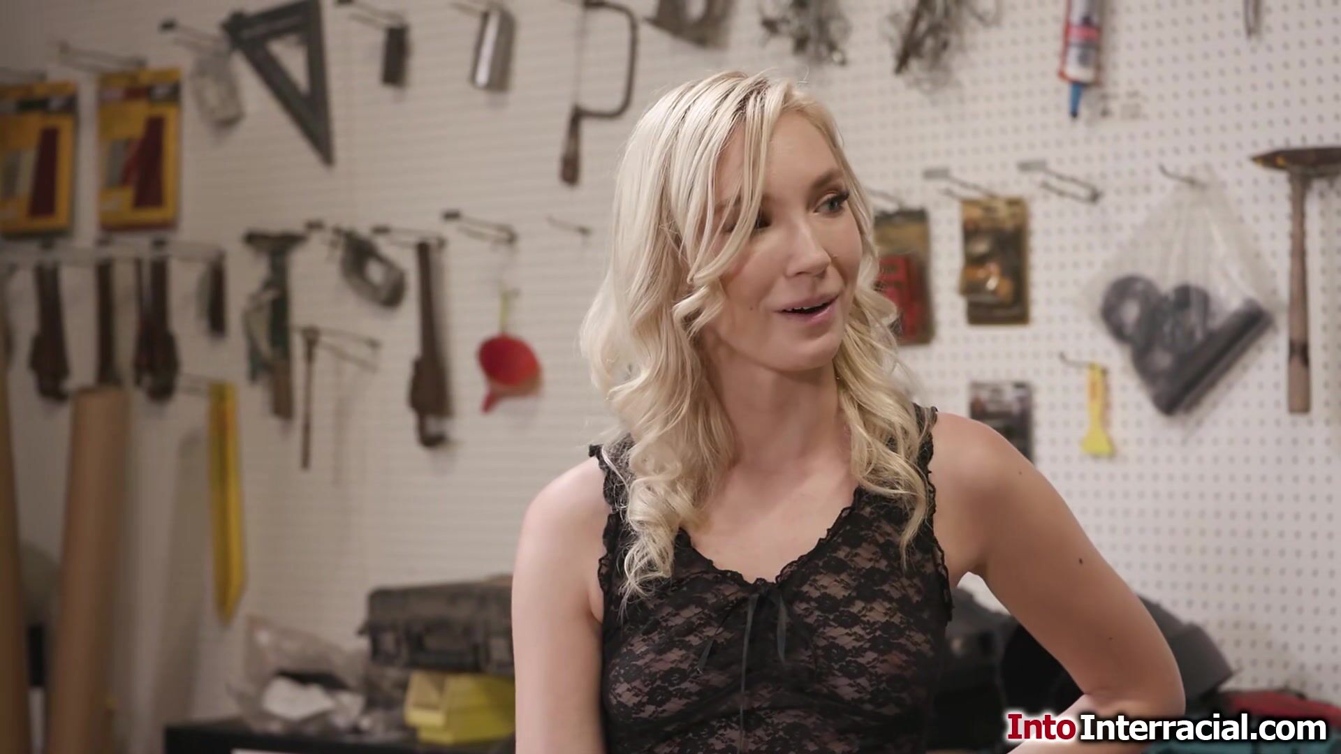 Blonde Claire Roos is deepthroat facefucked by the mechanics bbc while she waits for her car.He bends her over the hood of a car and doggystyle bangs her.The small tits babe gives a blowjob and sets her ass on his big black cock and anal rides