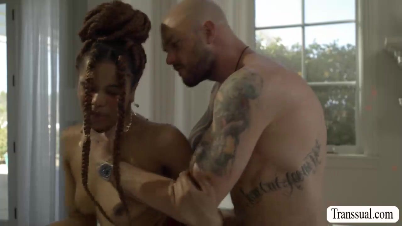 Busty Ebony TS Cloudy Vi is on the couch with Cliff Jensen and sucking his hard big cock passionately.After that,I remove my clothes and then I let him bareback fuck my asshole so hard and go to Transsual.com for the full video.