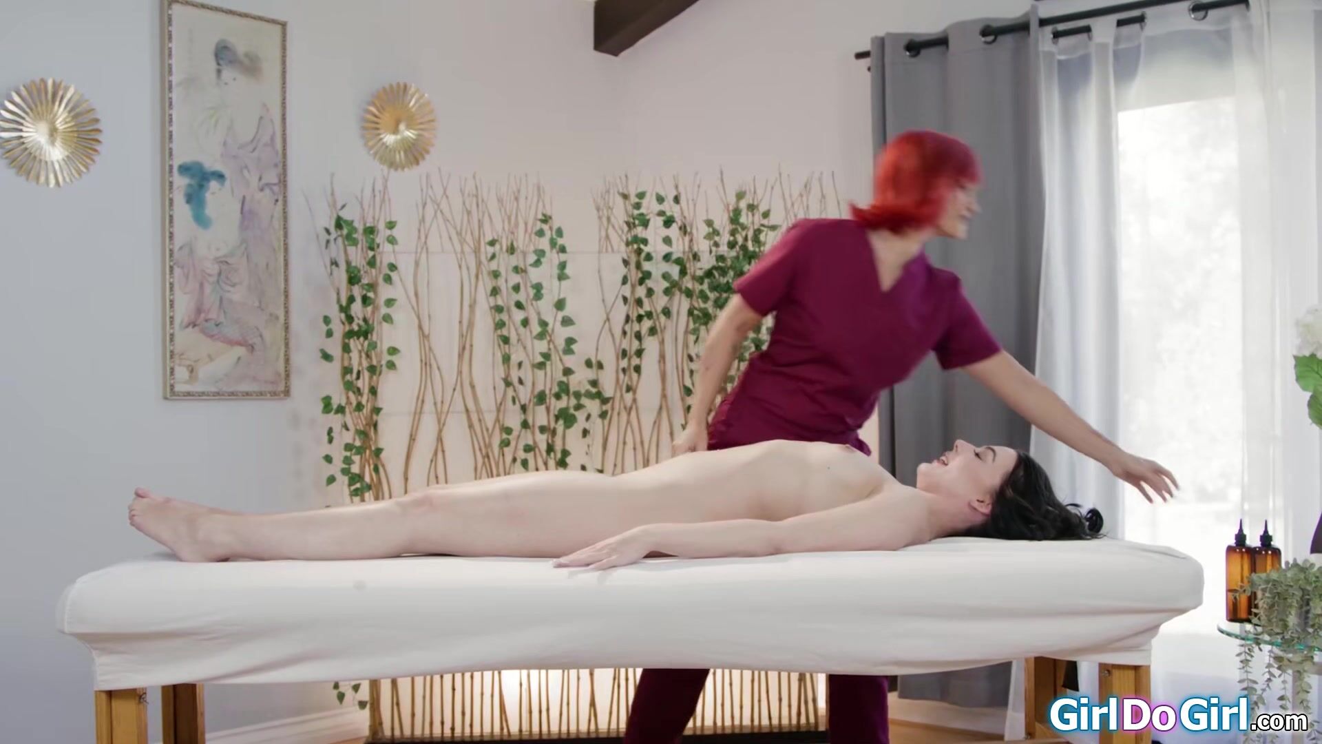 Masseuse helps client get ready for anal