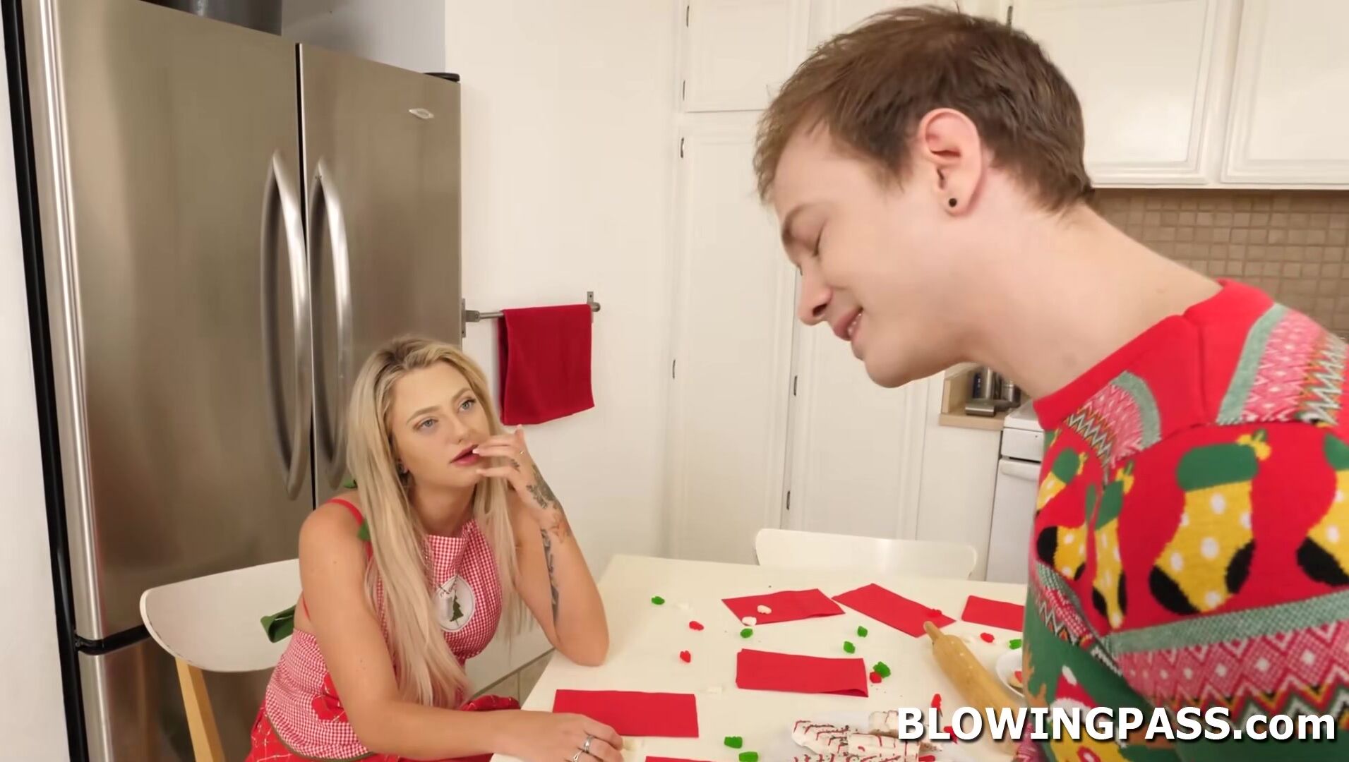 Stepbro gives his stepsister Harmony Rivers a dildo for Christmas.The teen prefers the real deal and takes out her stepbrothers big cock and deepthroats it.The petite blonde keeps sucking for the ultimate Christmas present and receives a cum facial