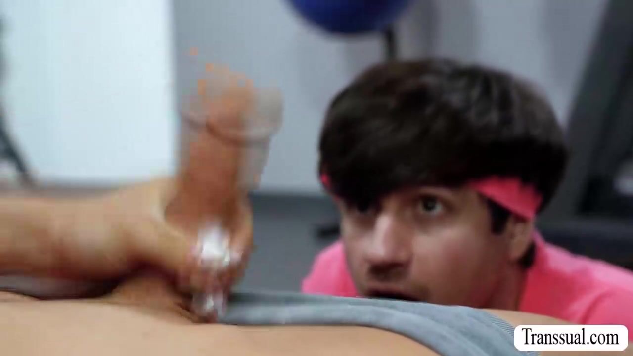 Busty shemale is in the gym with this two dude.After that,they start sucking each others hard big cock and then bareback fuck their wet asses so deep and fucking hard.Go to Transsual.com for the full video of this and more.