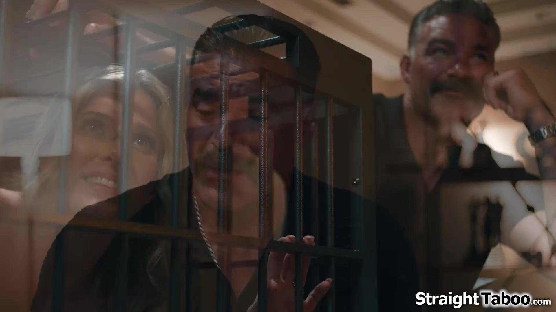 Nina White walks into her neighbors bathroom and finds his big tits wife Cory Chase locked in a cage.The milf explains its their fantasy and sucks off his big cock ifo her.The brunette is intrigued and is fucked in the cage while he licks his wife