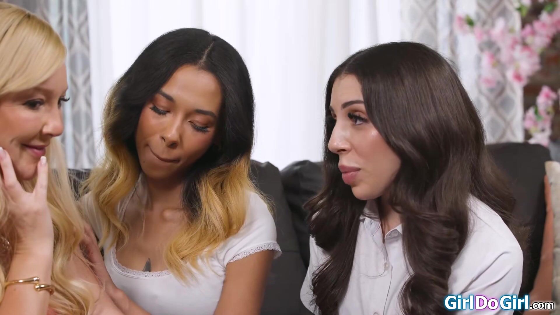 Lesbian recruiters Monica Lush and Kalani Luana give milf Laura Bentley and her stepdaughter Haley Spades their first lesbian experience.The petite teen licks the latina while her stepmom facesits.The small tits cougar wants to taste her teens pussy