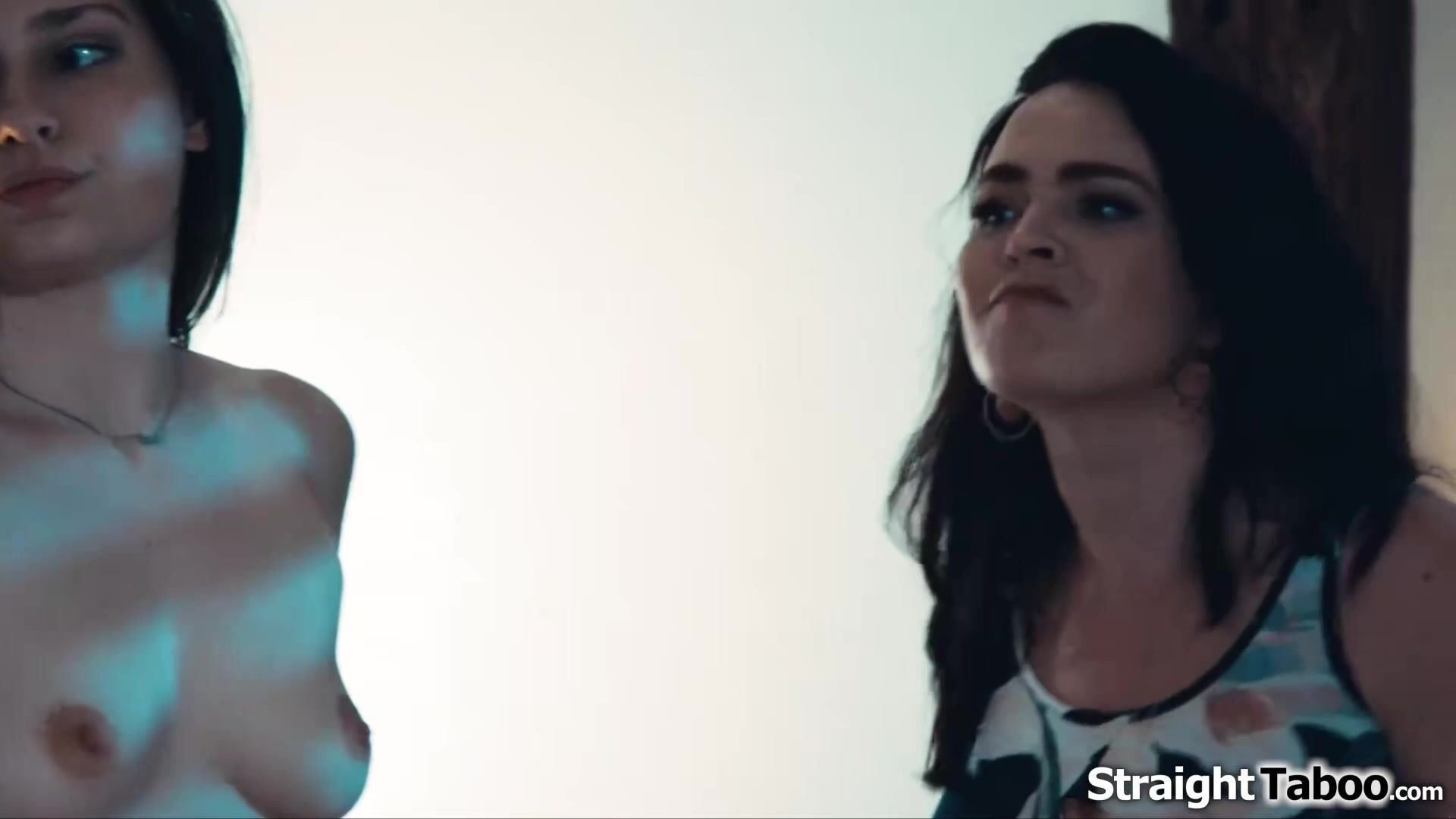 Stepniece Kamryn cant hide her feelings for her stepuncle anymore.She gets her pussy licked and sucks dick.Her busty stepmom Krissy Lynn walks in when they fuck.The teen gives her a kiss and she joins.The milf kisses her stepdaughter while they bang