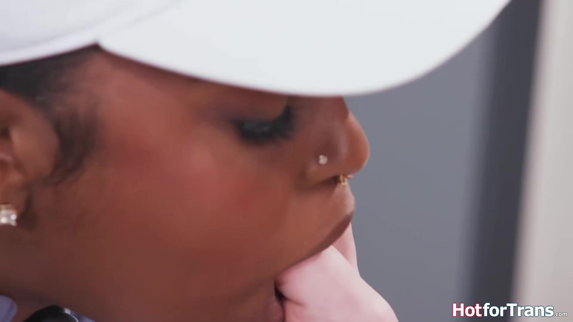 Ebony Destiny Mira sucks on shemale Leah Hayes feet when big cock tgirl Andylynn Payne walks by and joins.The petite black babe is fucked by the trans cheerleader while sucking cock.She facesits the tranny who gets anal barebacked by the busty ts