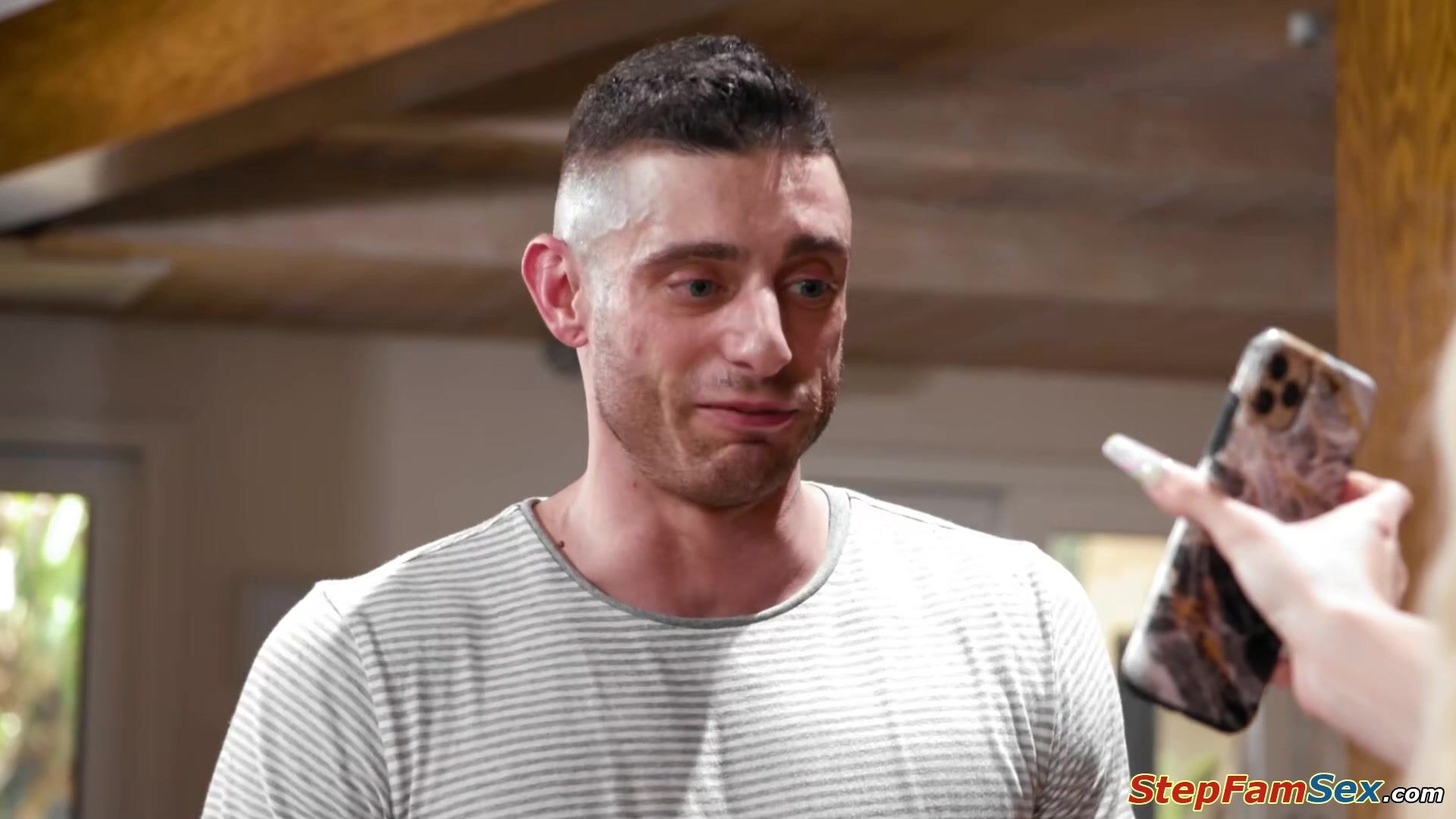 Stepbro thinks it funny to send his busty stepsis Skylar Vox a pic of him jerking off on her.The big tits teen wants more and masturbates on him before she lets him eat her shaved pussy.The blonde deepthroats and is tittyfucked before she rides cock