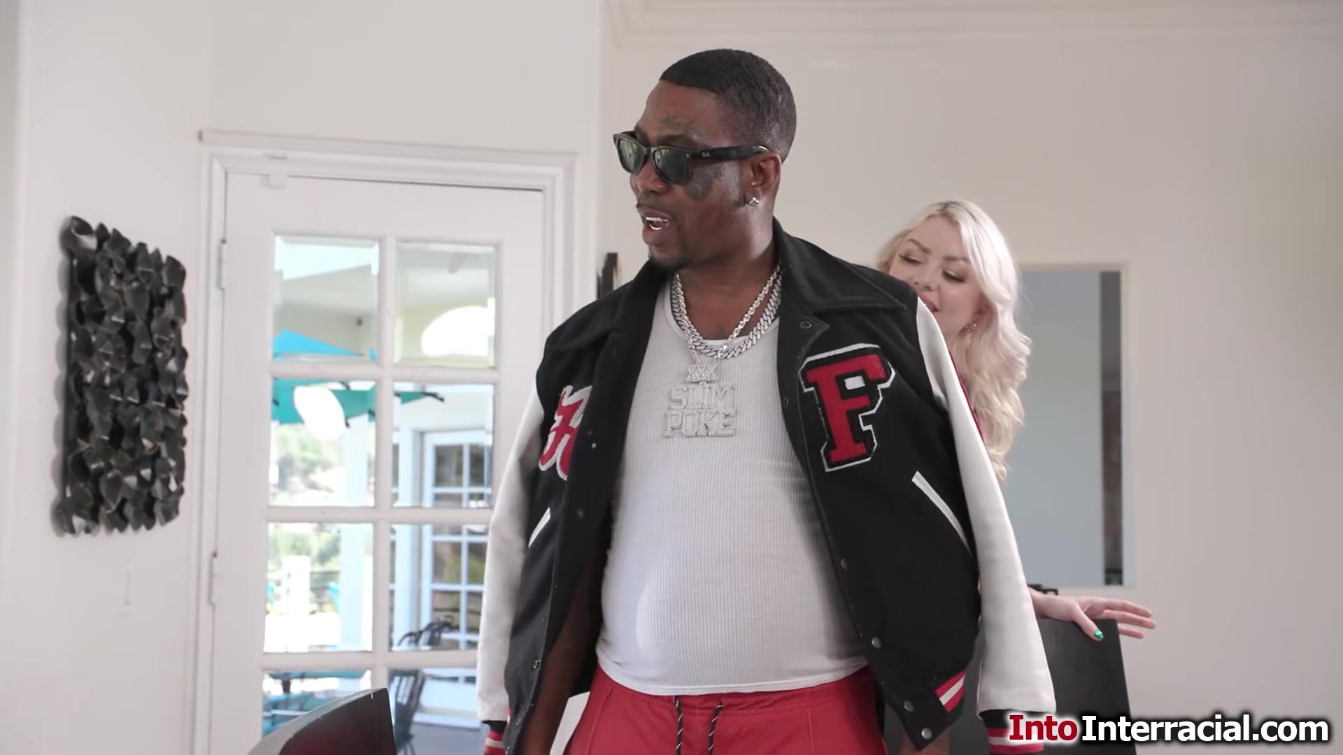 Big tits tattooed Nicole Saphir needs to get Slim Poke his mojo back.The busty petite blonde takes out his big black cock and deepthroats it.She undresses and masturbates before she gets her pussy fucked.The horny big boobs babe rides on his bbc