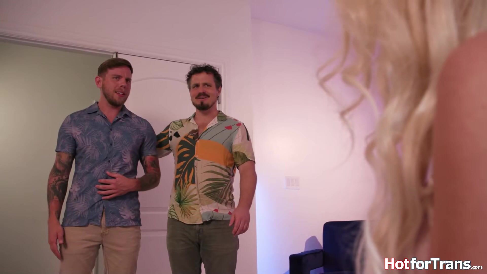 Busty shemale wife Leah Hayes guy wants to watch her have sex.The big tits blonde tgirl gets kissed and has her boobs sucked ifo her husband.The trans is sucked off and deepthroats the guys big cock.On her back the sexy tranny gets anal barebacked