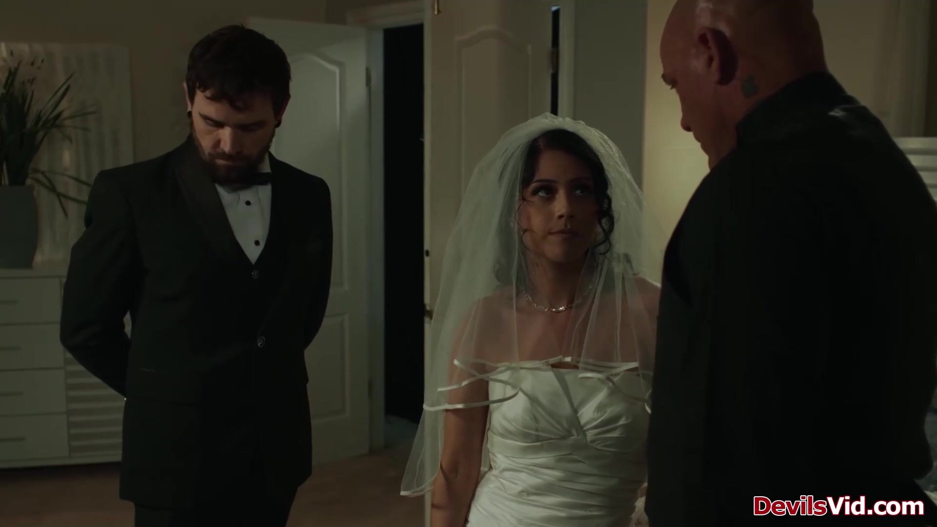 Penelope Reed didnt expect her husband give her to his stepdad after the wedding.The old man claims his stepsons wife.He is kissing and licking her hairy pussy.The petite latina gives in and do blowjob.Shes getting fucked while her guy is watching.