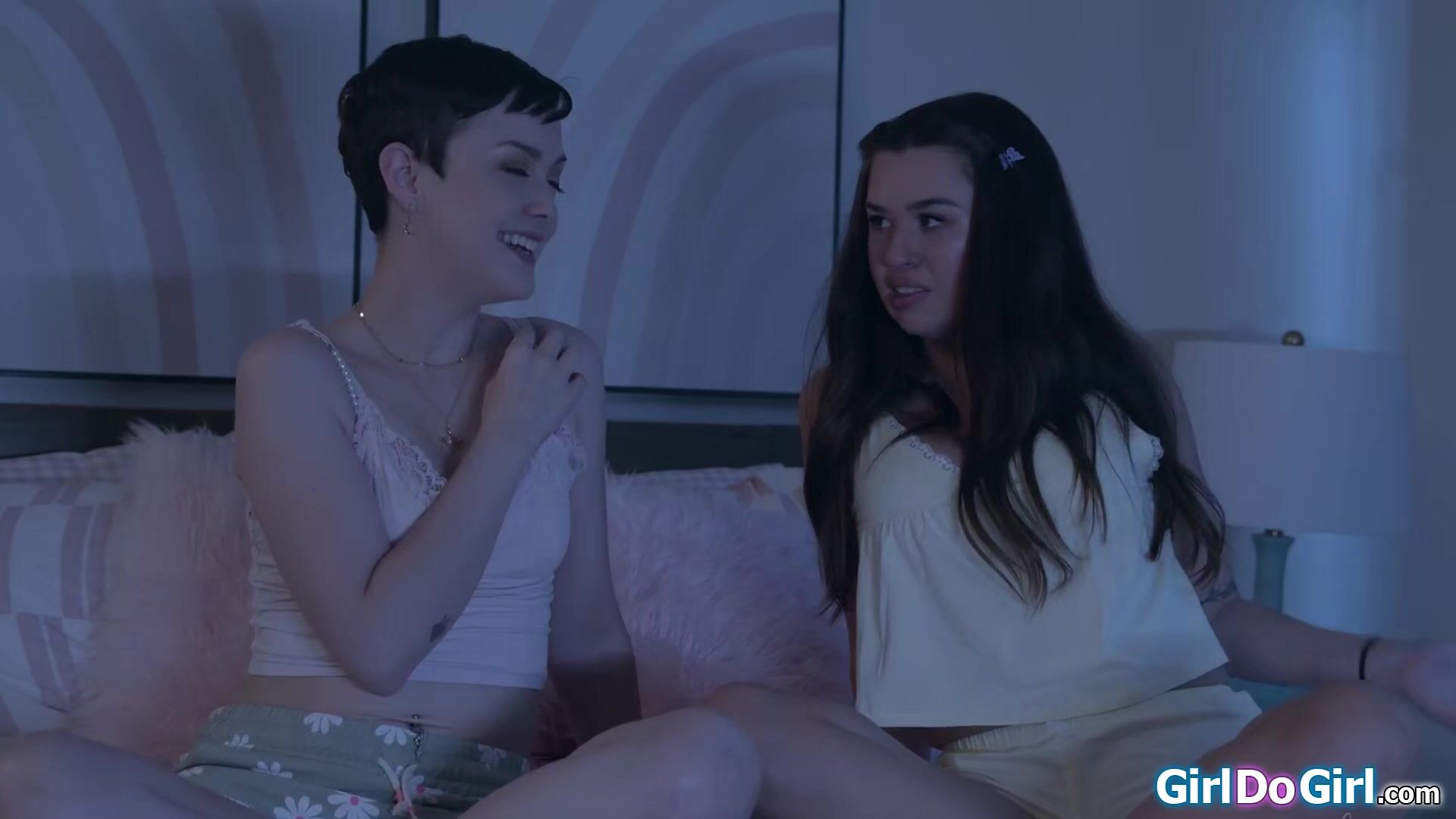Busty Madelynn May accidently rented a porn but her petite bff Jade Valentine suggests they watch it for a bit.The teens get horny and kiss each other.The big tits brunette sucks on her besties boobs and licks pussy.She scissors and facesits her gf