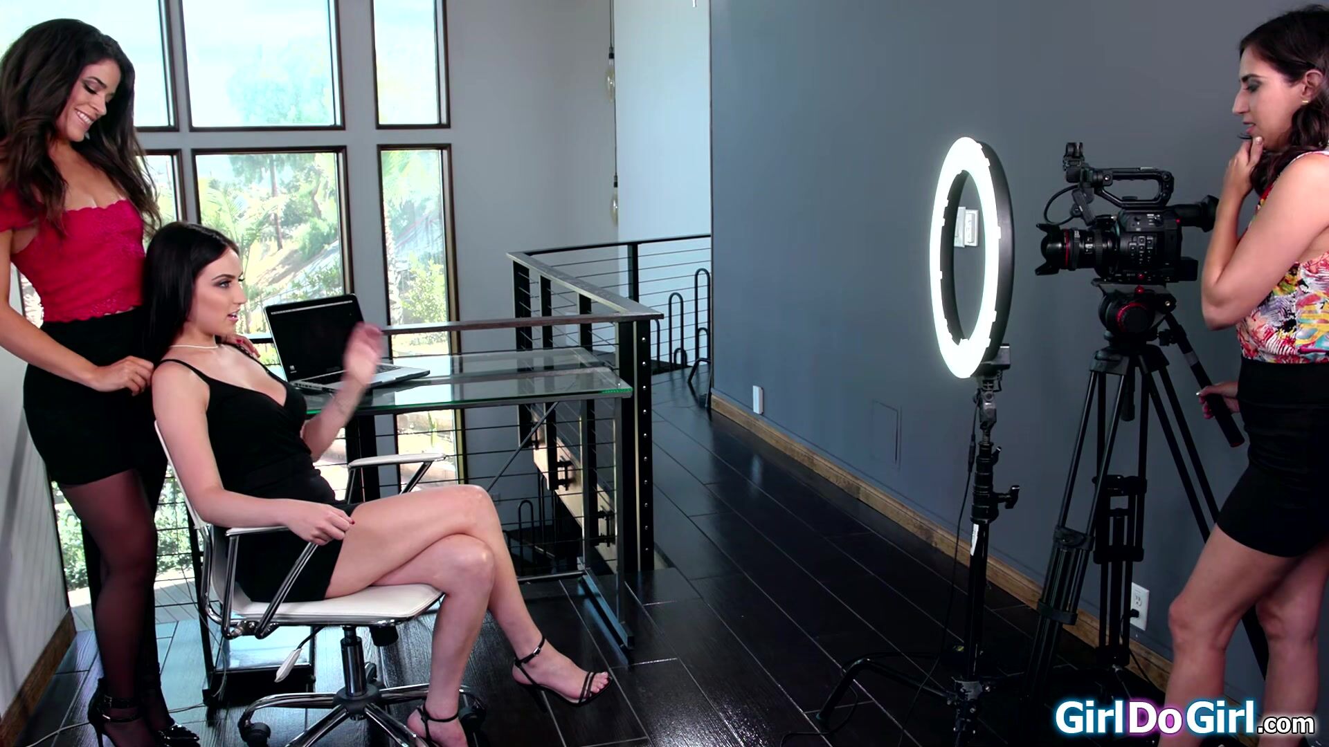 Horny lesbian colleagues Jade Baker and Victoria Voxxx have the hots for the busty camera babe April Oneil.The ladies lick the big tit brunettes hairy pussy.The small boobs latina sucks titties while April rims her ass while fingering her snatch