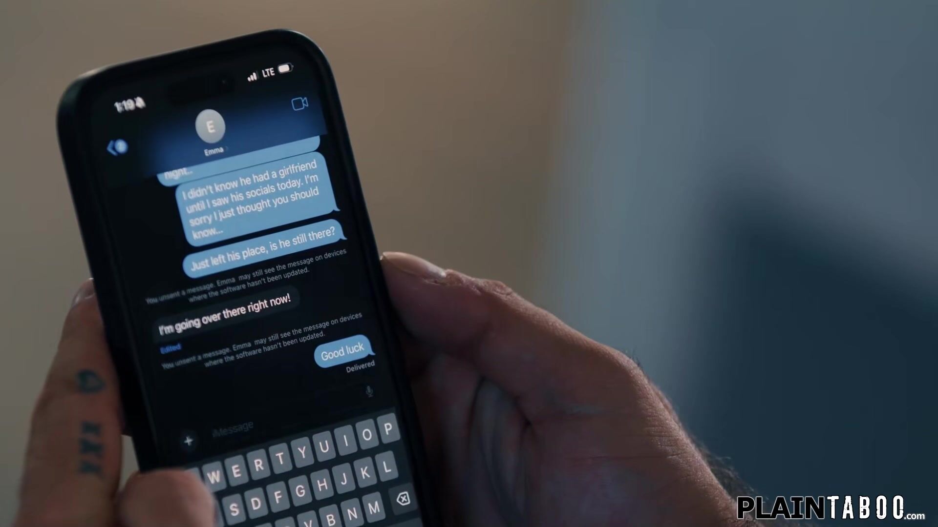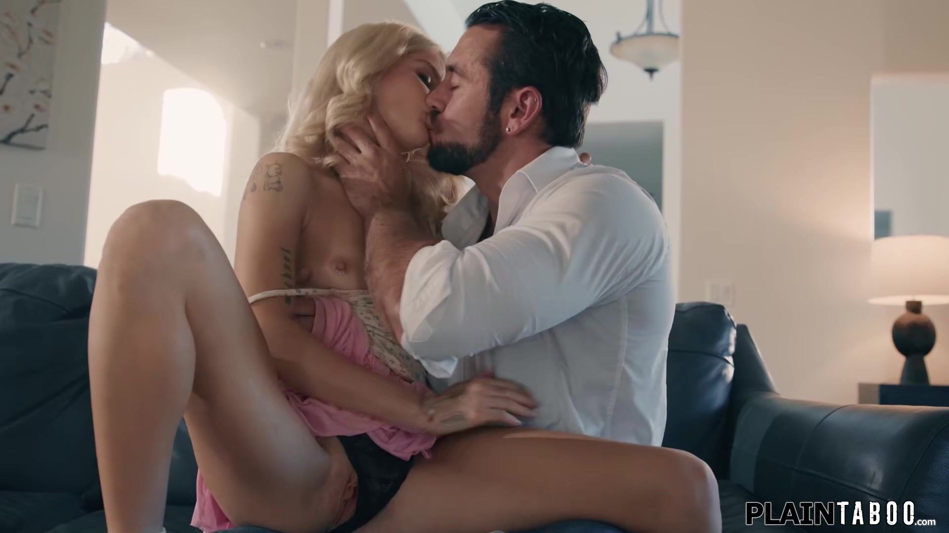 Teen Emma Rosie storms into her cheating bfs house and finds his stepdad there.Not knowing he send the text she persuaded into cheating with him.The petite small tits blonde is fingered and pussy licked.He facefucks the babe and she rides his cock
