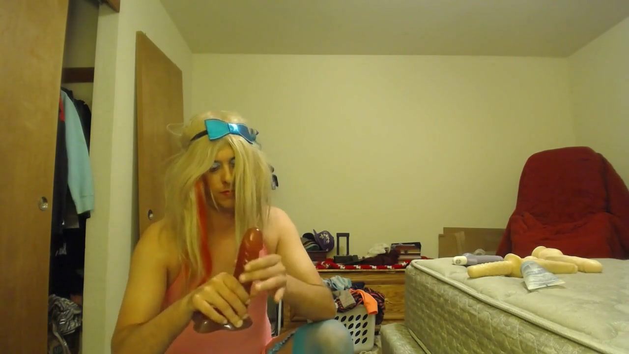 Crossdressing Slut, Zoey Expose`, fucks huge dildos and eats cum