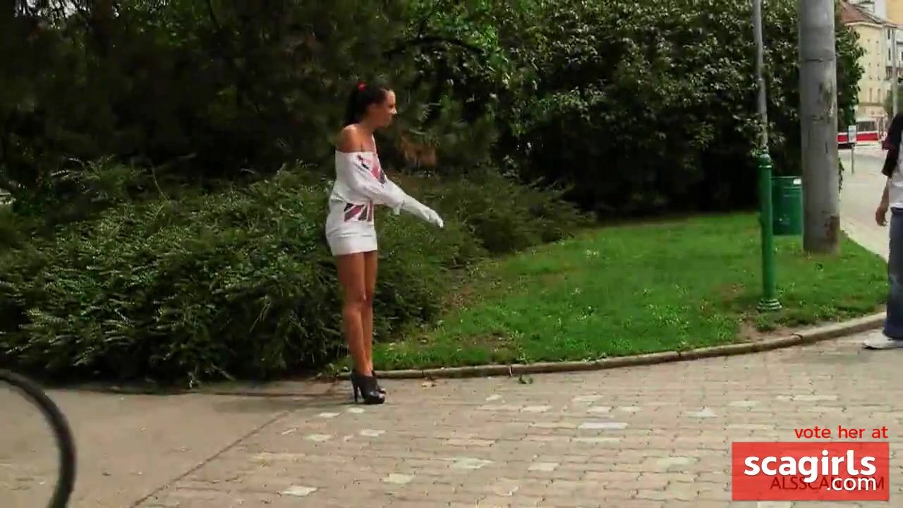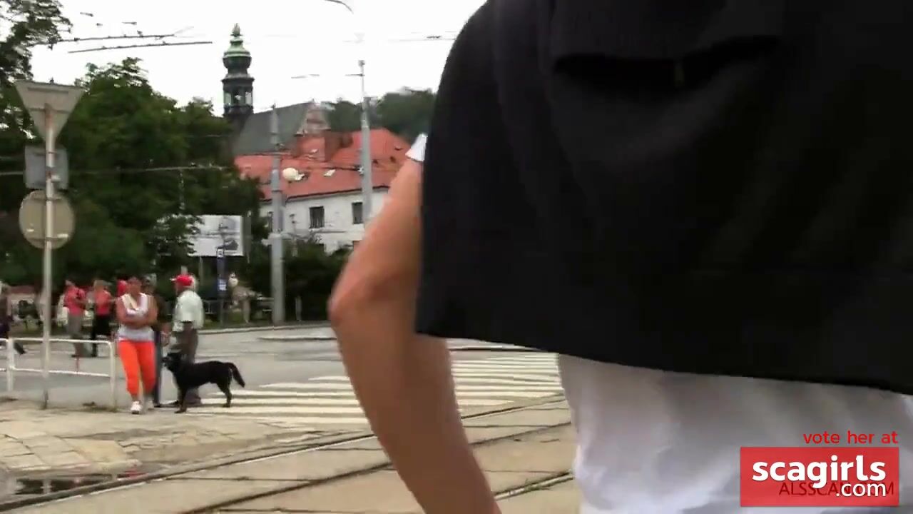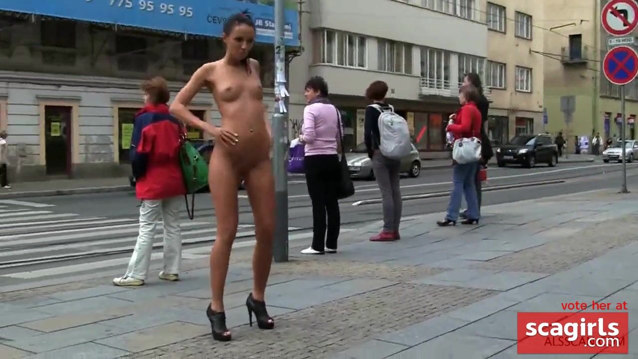 Naked Czech girl was walking through the city center