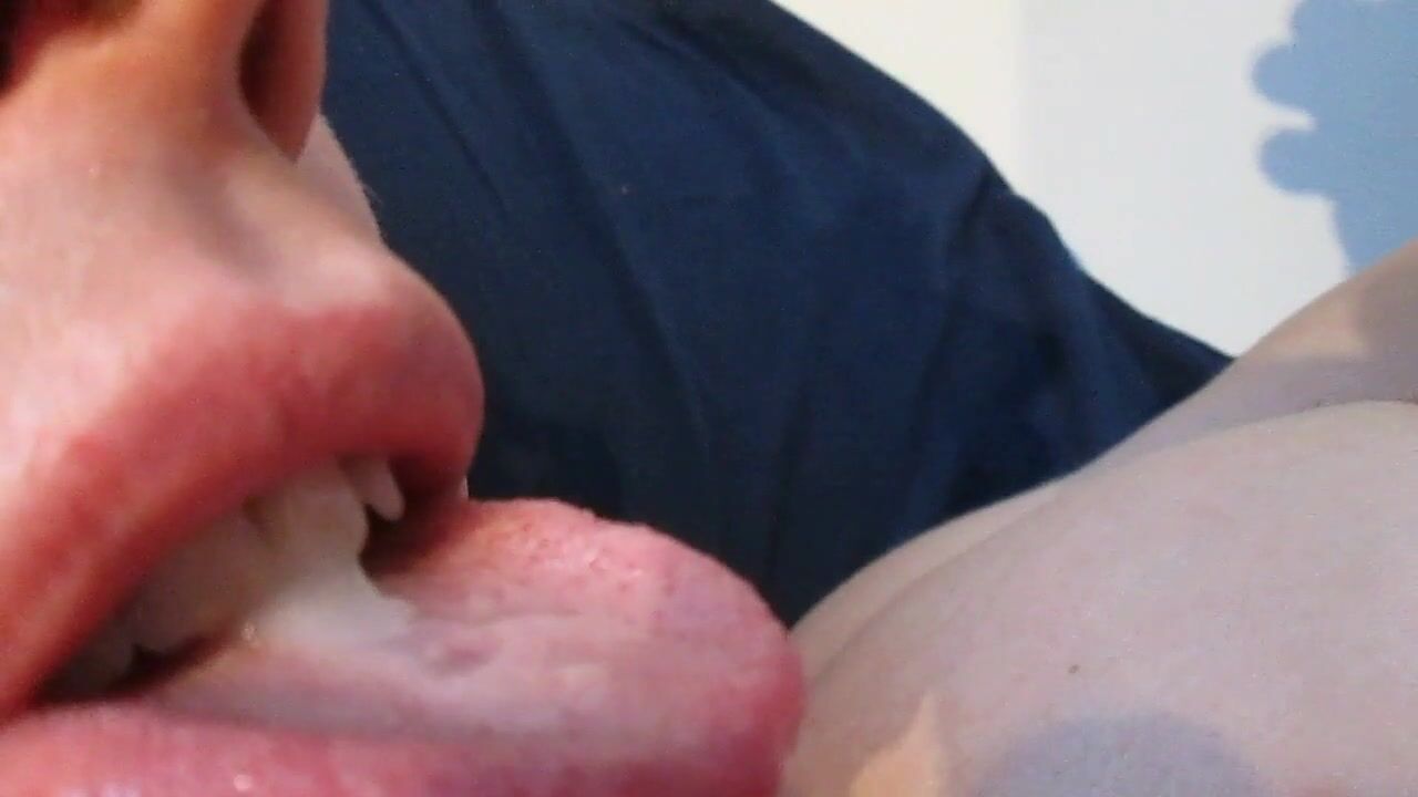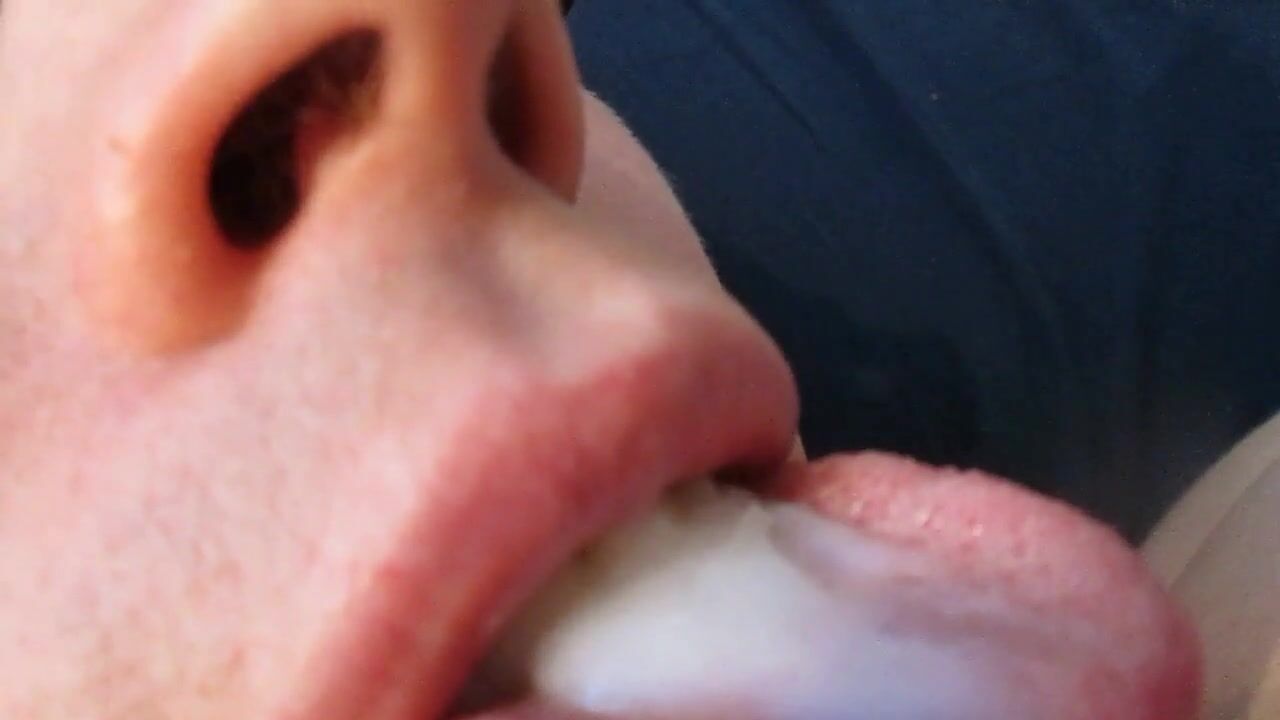 Swallowing a hot load of gooey cum