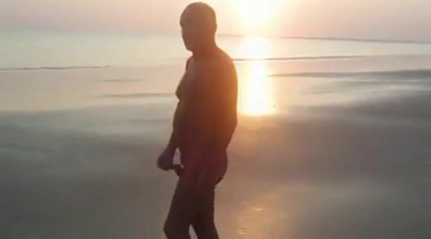 Hot hairy dad takes a sunset beach stroll, and rewards his cameraman with a very hot bj