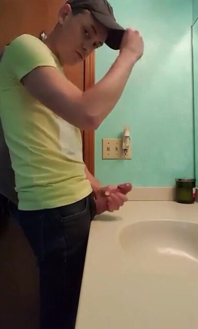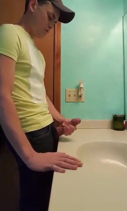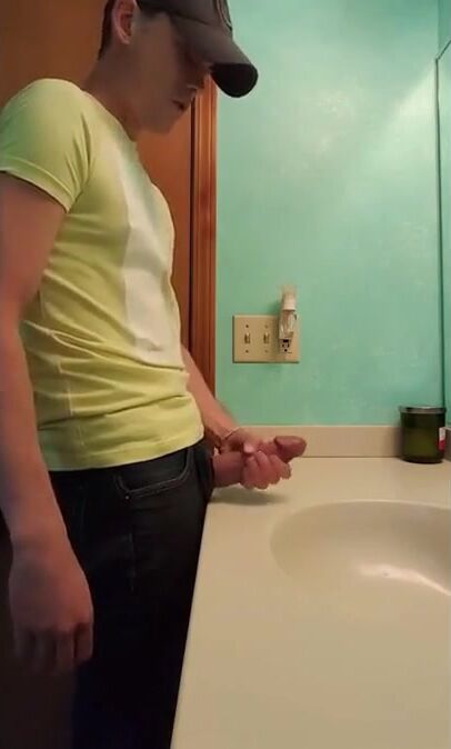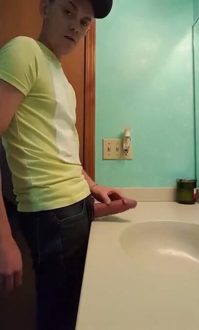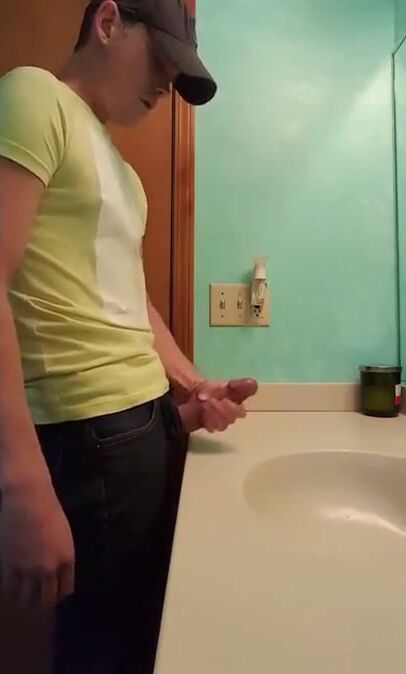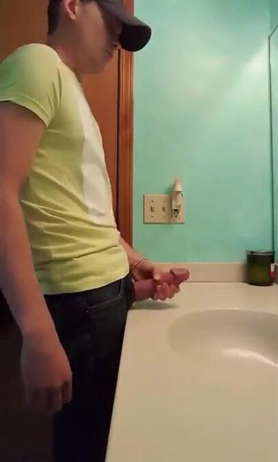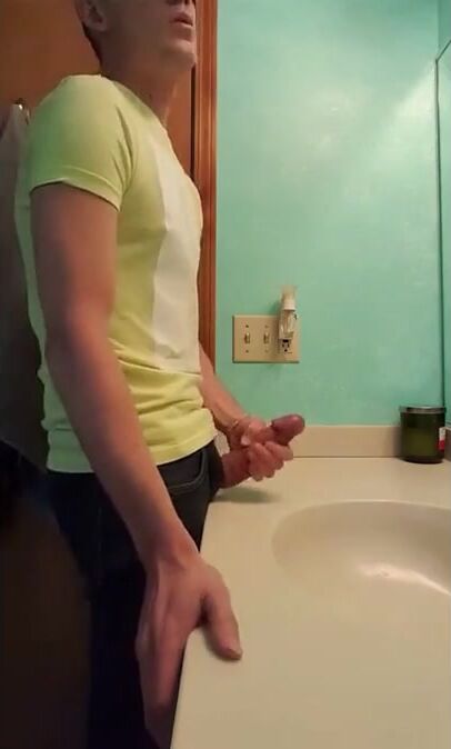 straight hunk with fat dick jerks off in bathroom