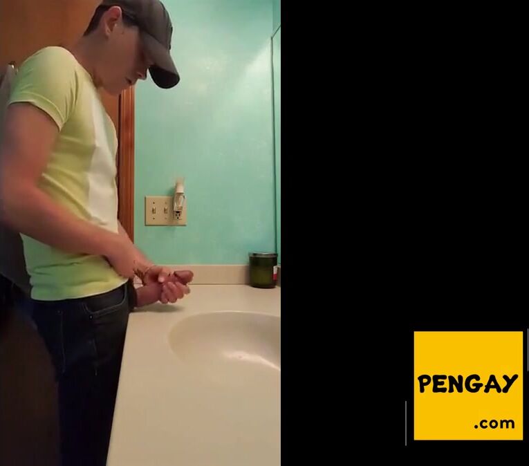 a straight guy jerks off in bathroom with fat dick