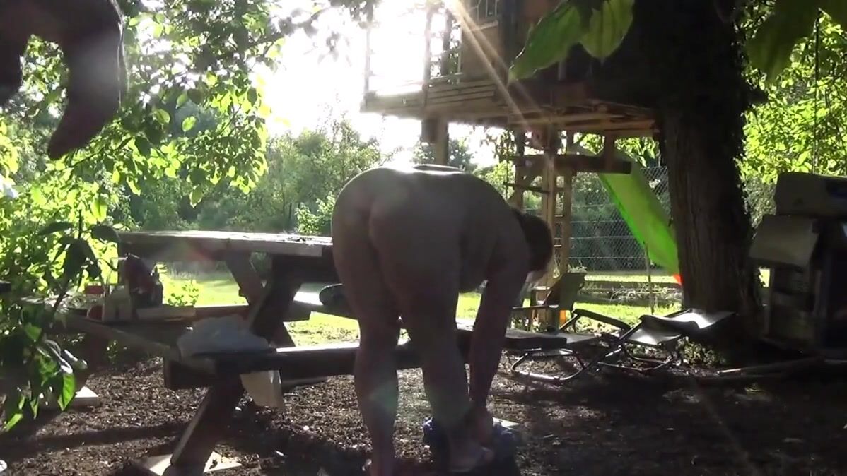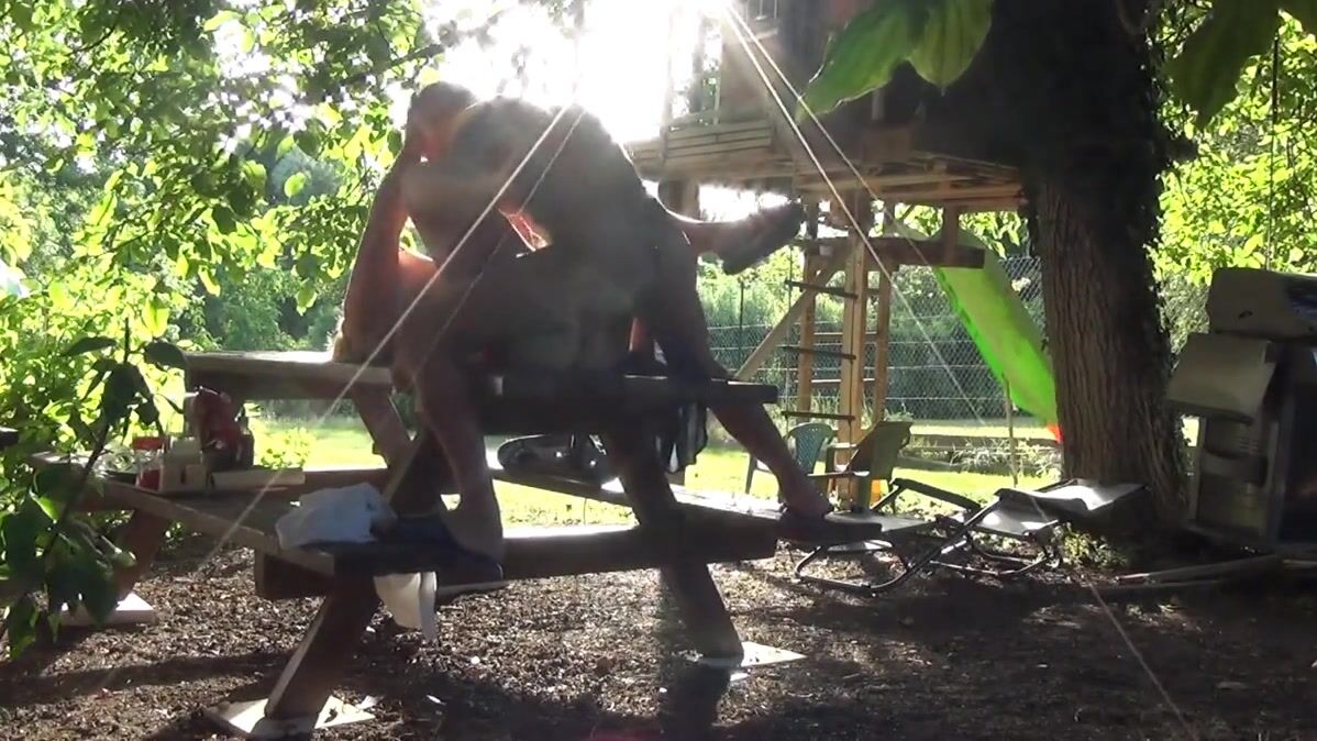 This bitch of Helene is made smash the bottom on the table of the garden in front of the neighbors, and that excites it that they masturbate by looking at it