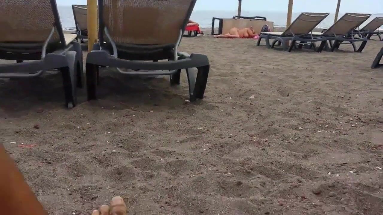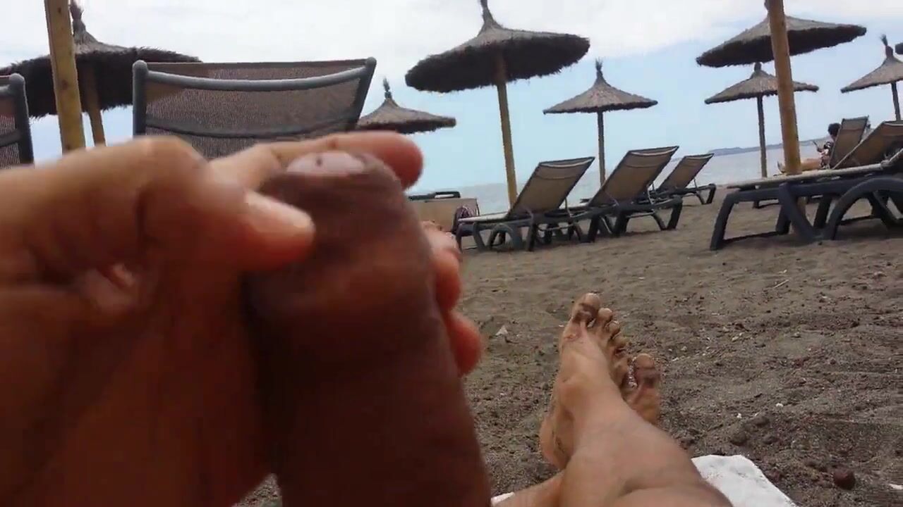 masturbacion en la playa enfrente de una milf con grandes tetas que estaba junto a su marido, habia mas gente alrededor en la playa. yo estaba a la vista de todos ellos