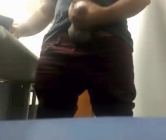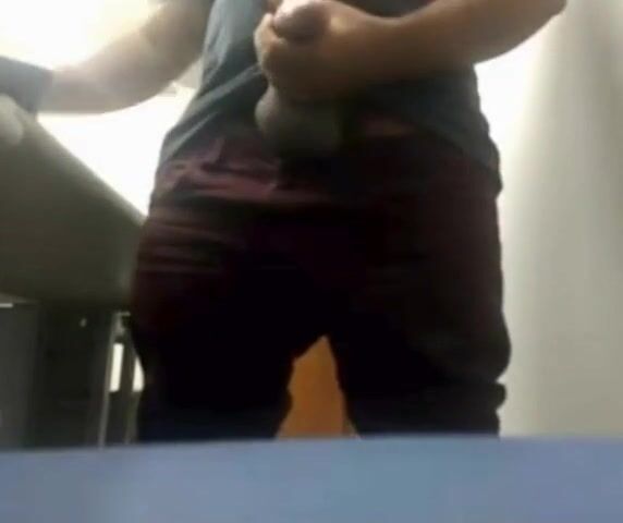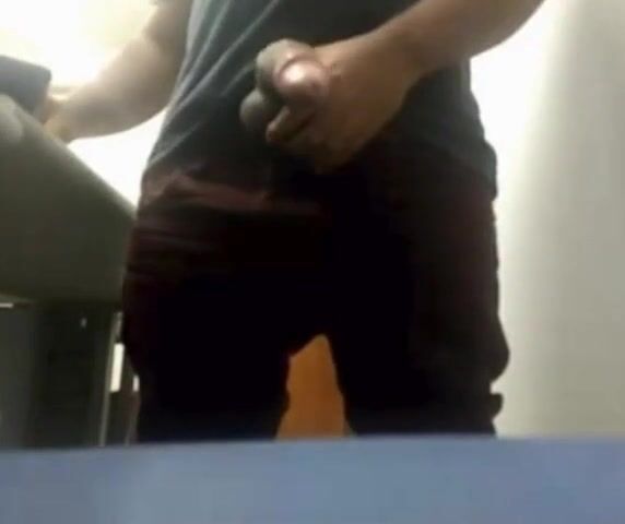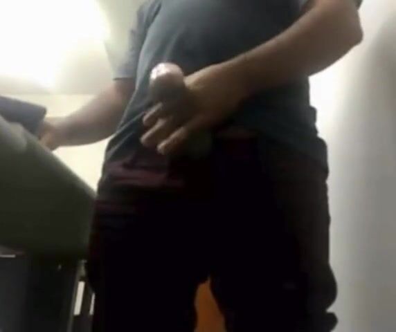 MILKING HIS BIG UNCUT BRAZILIAN DONKEY DICK AT WORK