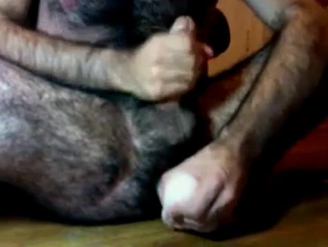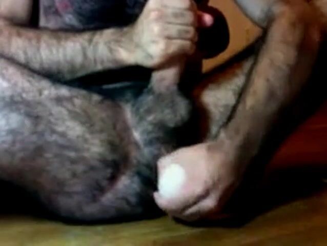 Hairy daddy uses his dildo