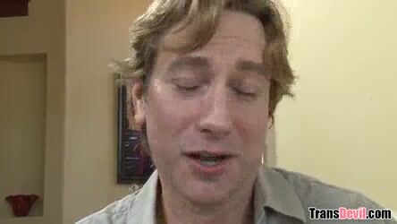 Brunette Shemale Rides a Cock