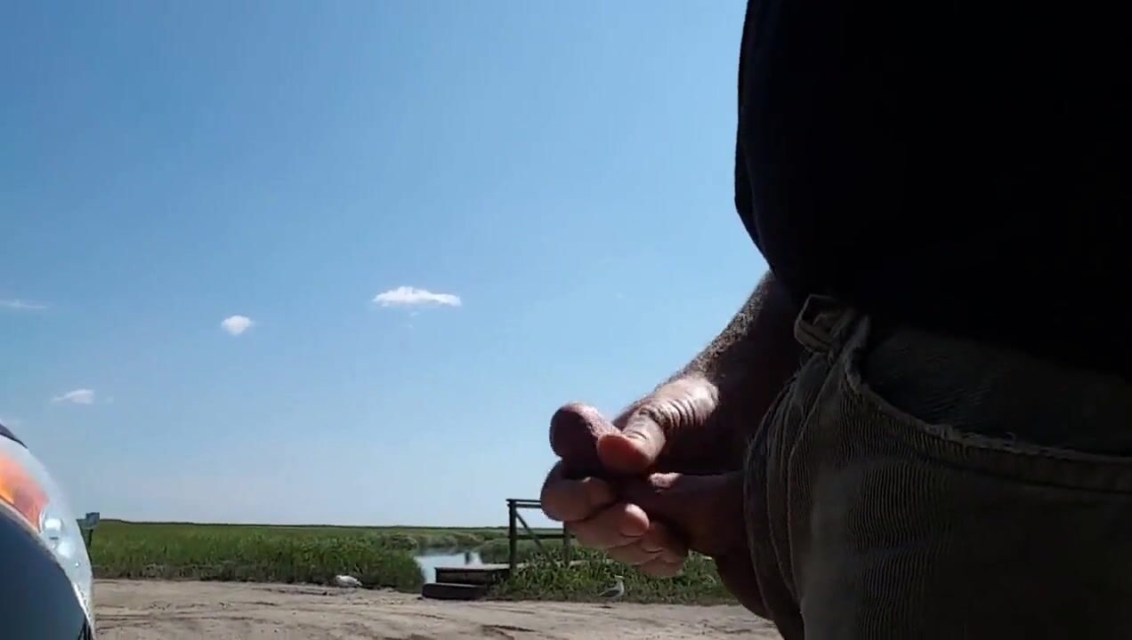 Jerking off at public boat ramp---Cum Shot
