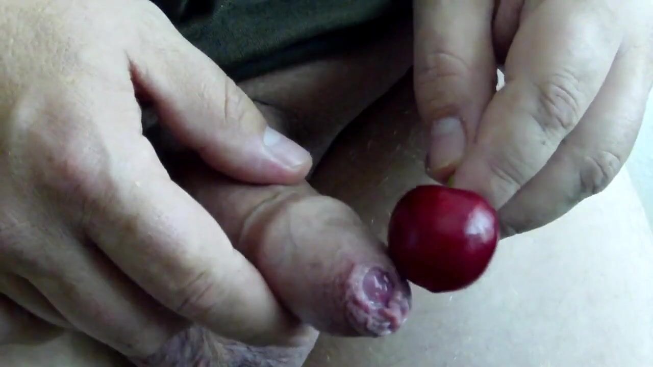 Here is a brand new clip showing me (male),my uncut cock and a cherry. I am rubbing the cherry, dock it to my foreskin, pulling foreskin back and come on the cherry for the first time and second time.