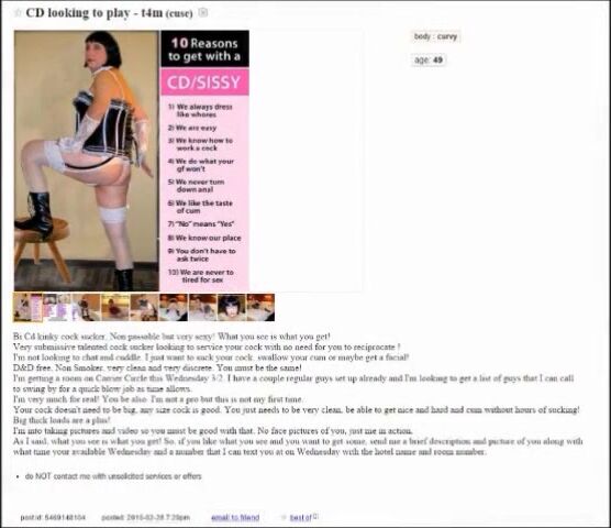 Sissy CD Cock Slut Amber places another Craigslist add and sucks some stranger cock!