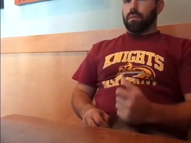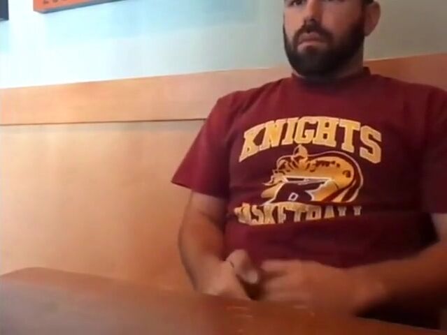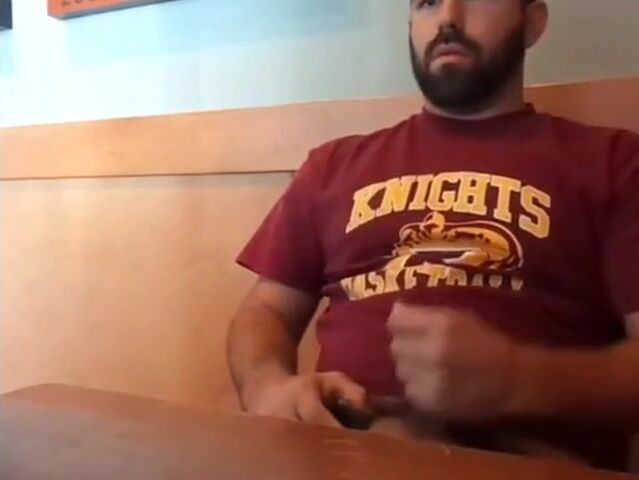 Bearded Bro Public Jerk Off in A Coffee Shop