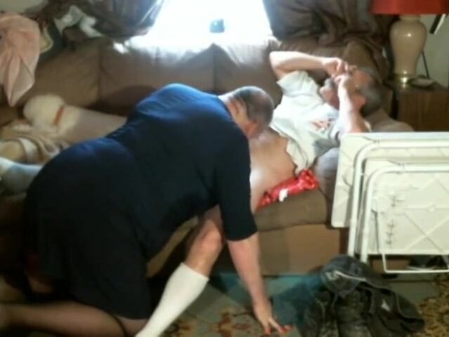 Crossdresser sucking mature buddies cock and swallows it all